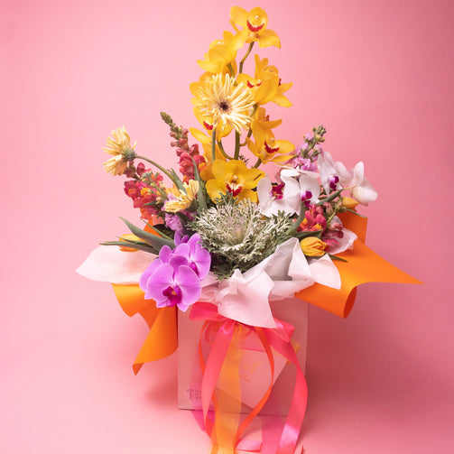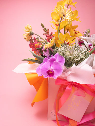 Introducing our stunning bag of seasonal blooms—this is our absolute favorite! Winter brings the beauty of orchid season, and we believe these exquisite flowers are truly among the best. Their vibrant colors and elegant forms are sure to uplift any space and warm the heart during the colder months. Embrace the beauty of winter with this delightful collection of blooms! Summer brings the best of dahlia, stunning hydrangea and beautiful daisies