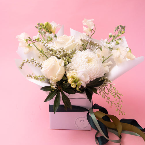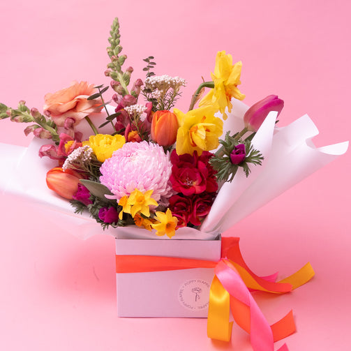 Introducing Frankie—a charming water-filled box featuring a classic, girly posy of pretty seasonal blooms.